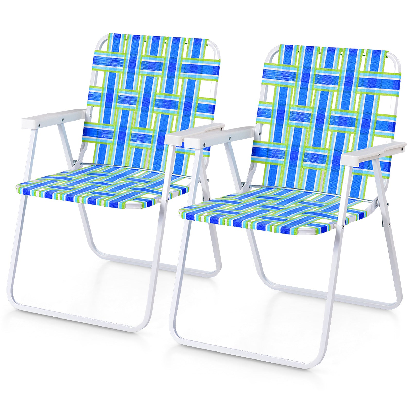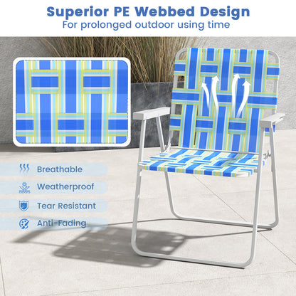 2 Pieces Folding Beach Chair Camping Lawn Webbing Chair, Blue