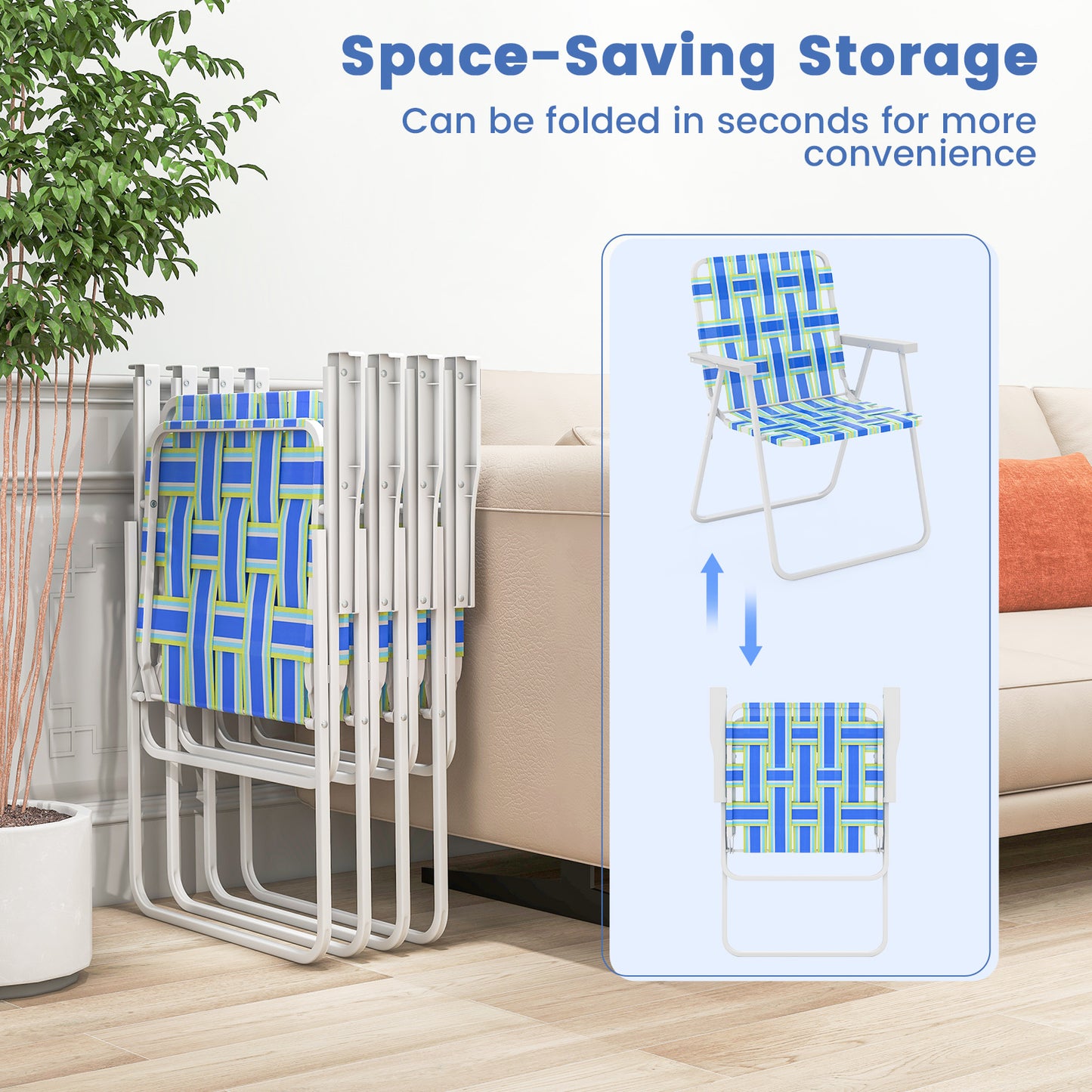 Lightweight Webbing: The chair is made with high-quality fade-resistant webbing. The webbing is lightweight, durable, soft and comfortable.
