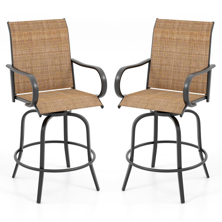 2 Pieces Patio 360 Rotation Swivel Bar Stool Set, Brown
