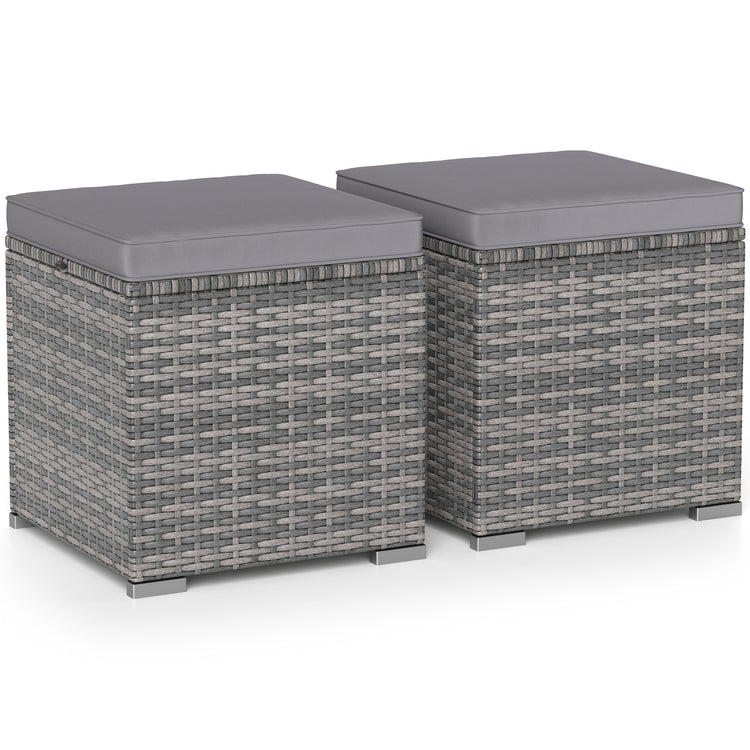 2 Pieces Patio Ottoman with Hidden Storage Space-Mix Grey-grey, Mix Grey-grey