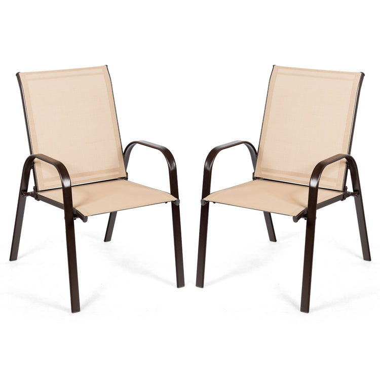 2 Pieces Patio Outdoor Dining Chair with Armrest, Beige