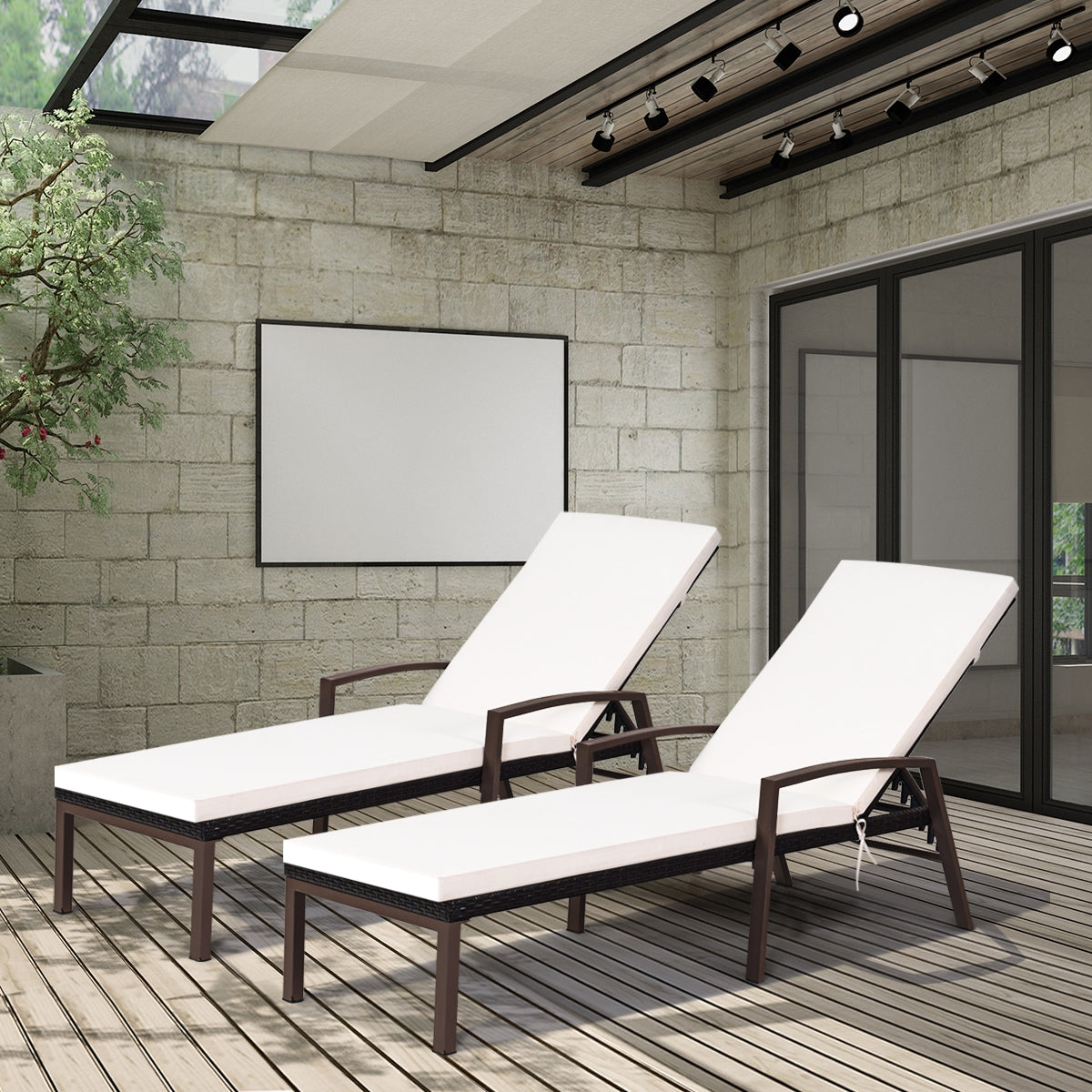 Patio Rattan Reclining Chaise Lounge Chair, Turquoise and White, Beige &, Turquoise