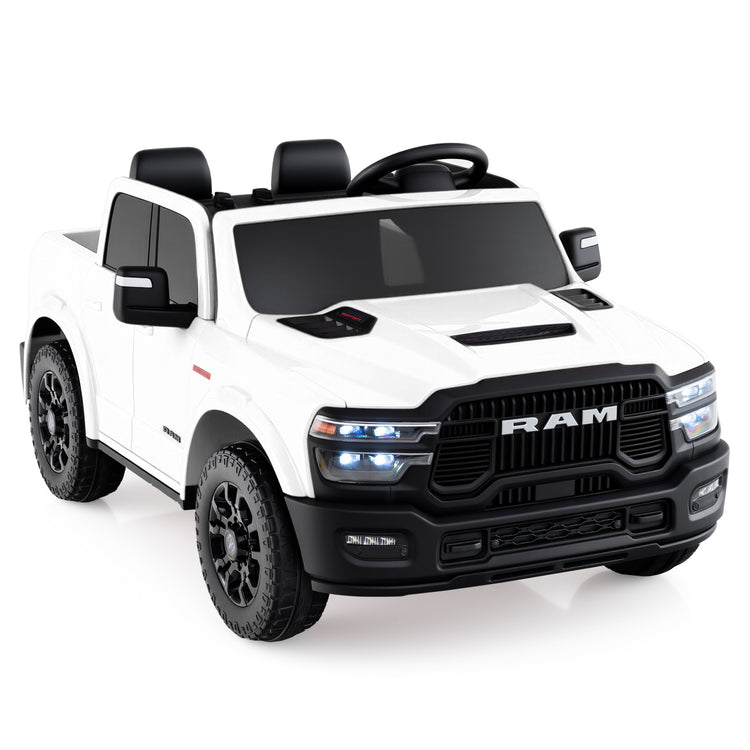 2 Seater 24V Ride on Toy for Big Kids Licensed Ram Truck with Remote and Music, White