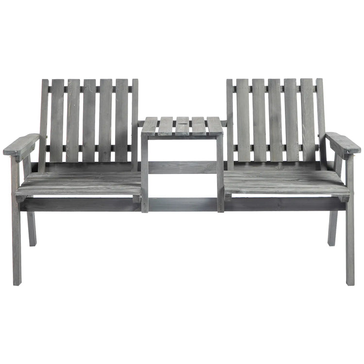 2-Seater Outdoor Bench with Table, Wooden Garden Bench, Grey