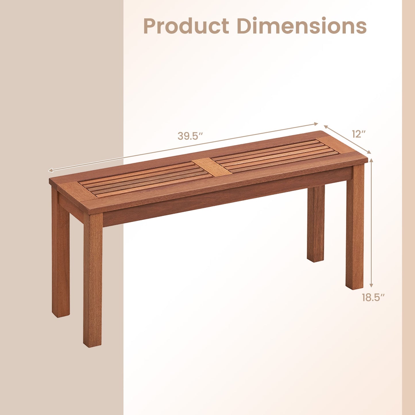 2-Seater Outdoor Bench: Designed with a spacious sitting area of 39.5"(L) X 12"(W), this patio wood bench can seat 2 people at the same time. Put this eye-catching bench in your backyard and enjoy relaxing time with your family or friends.