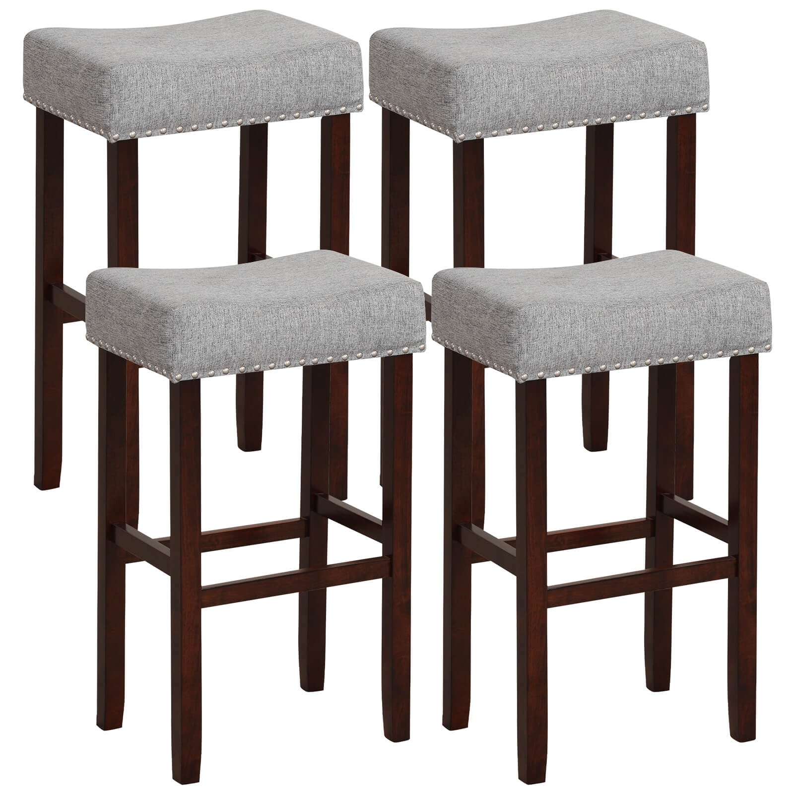 29 Inch Set of 2 Height Upholstered Bar Stool with Solid Rubber Wood Legs and Footrest, Gray