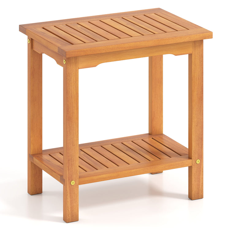 2-Tier Outdoor Acacia Wood Side Table with Slatted Tabletop and Storage Shelf