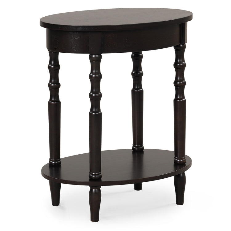 2-Tier Oval Side Table with Storage Shelf and Solid Wood Legs, Espresso