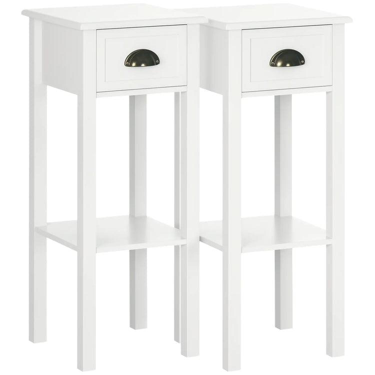 2 Tier Side Table, Set of 2, Narrow Tall End Table with Drawer, White