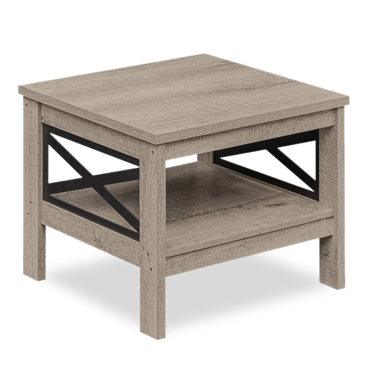 2-Tier Square Side Table With Storage Shelf, Oak
