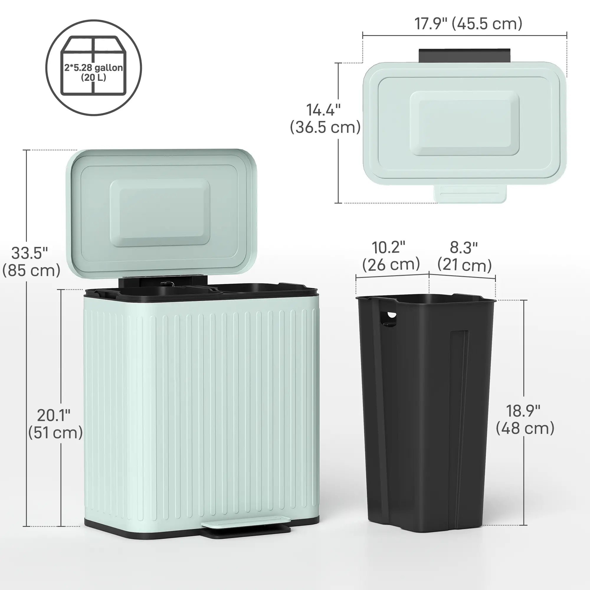2 x 5.3 Gallon Trash Can, Soft Close Lid, Removable Inner Buckets