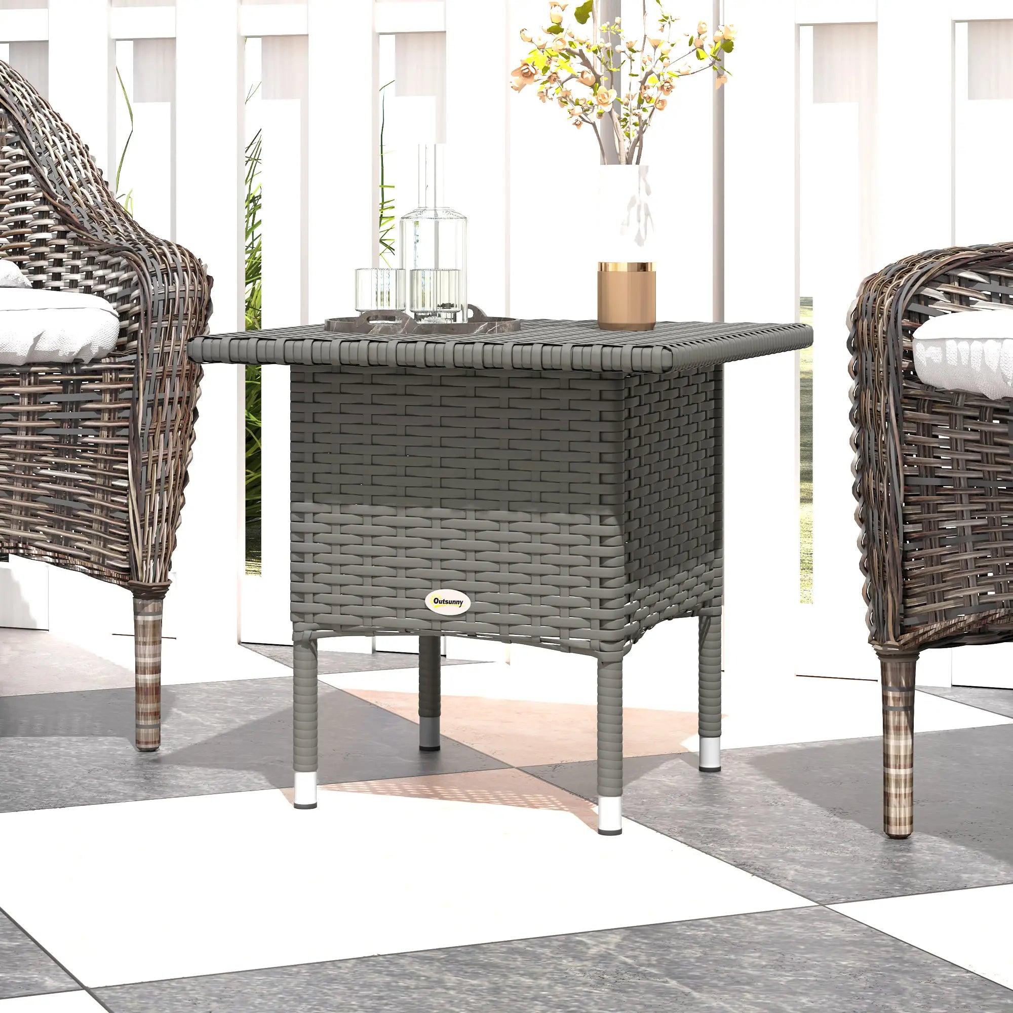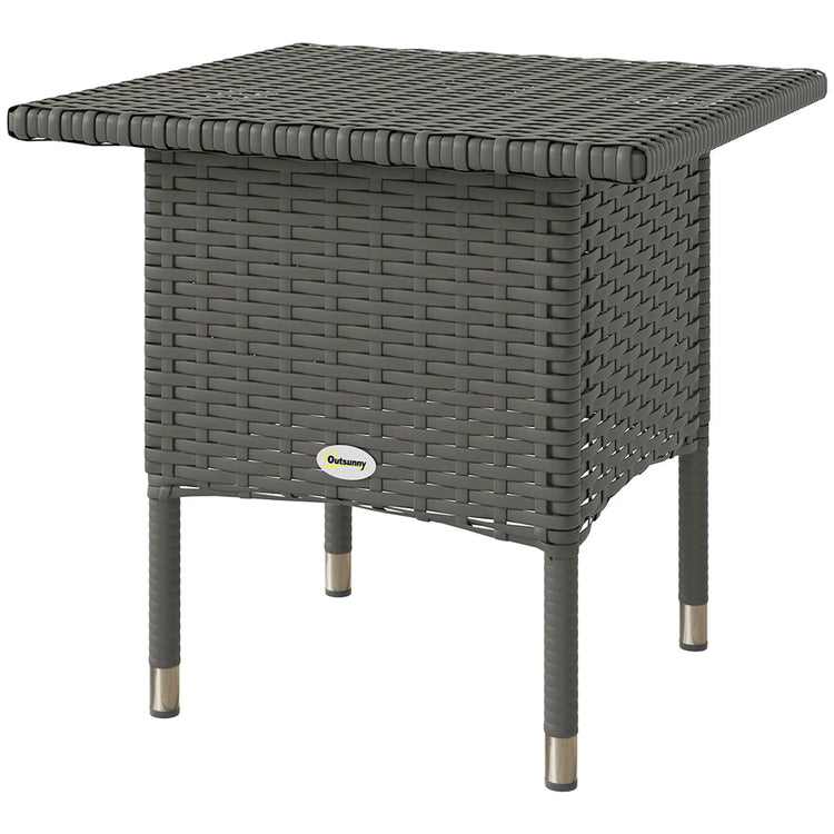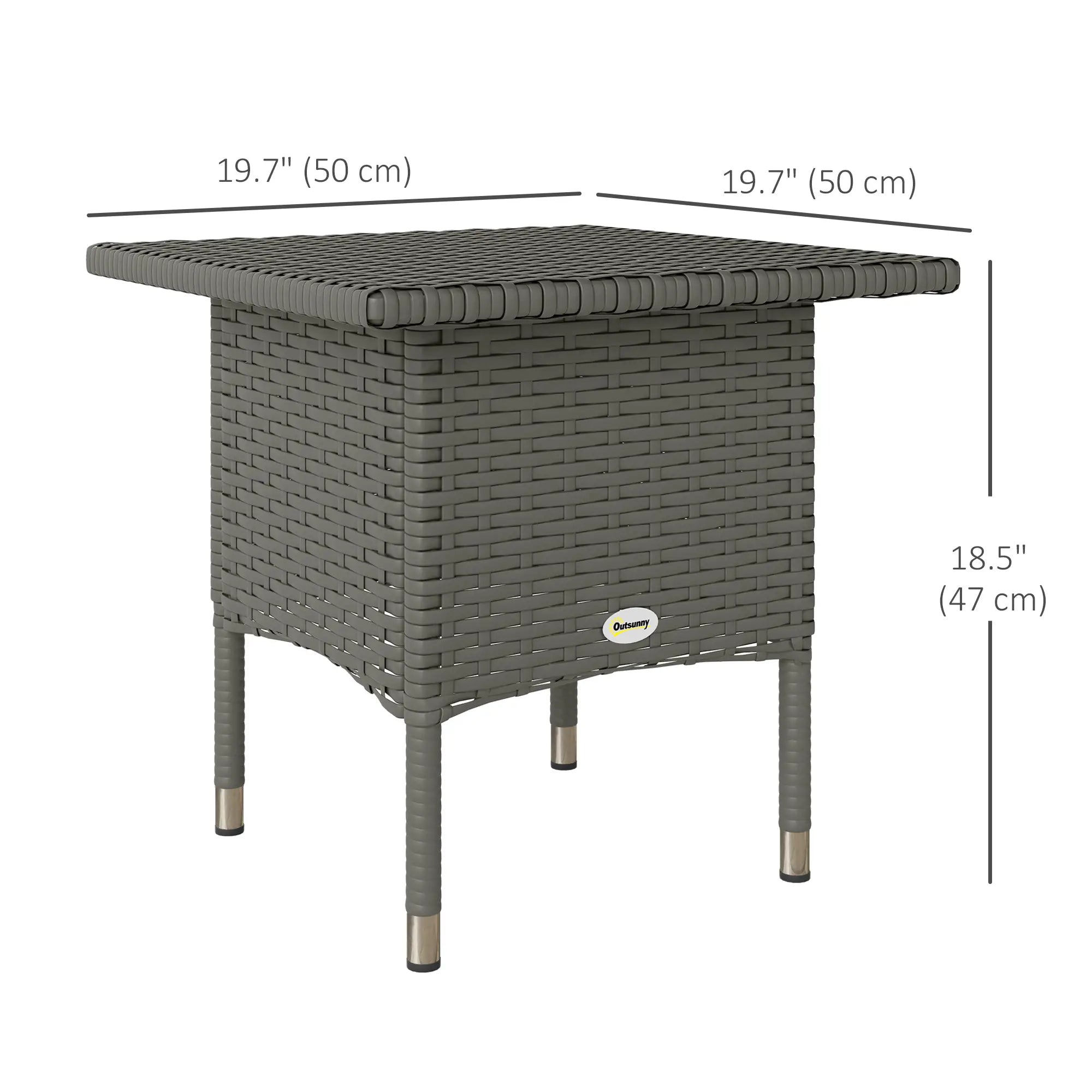 20" Square Outdoor Side Table, Grey Woven Top, Grey