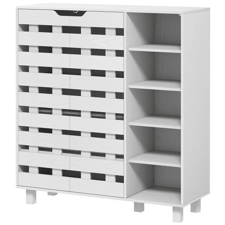 21 Pair Shoe Cabinet, 5-Tier Double Door Cupboard, White