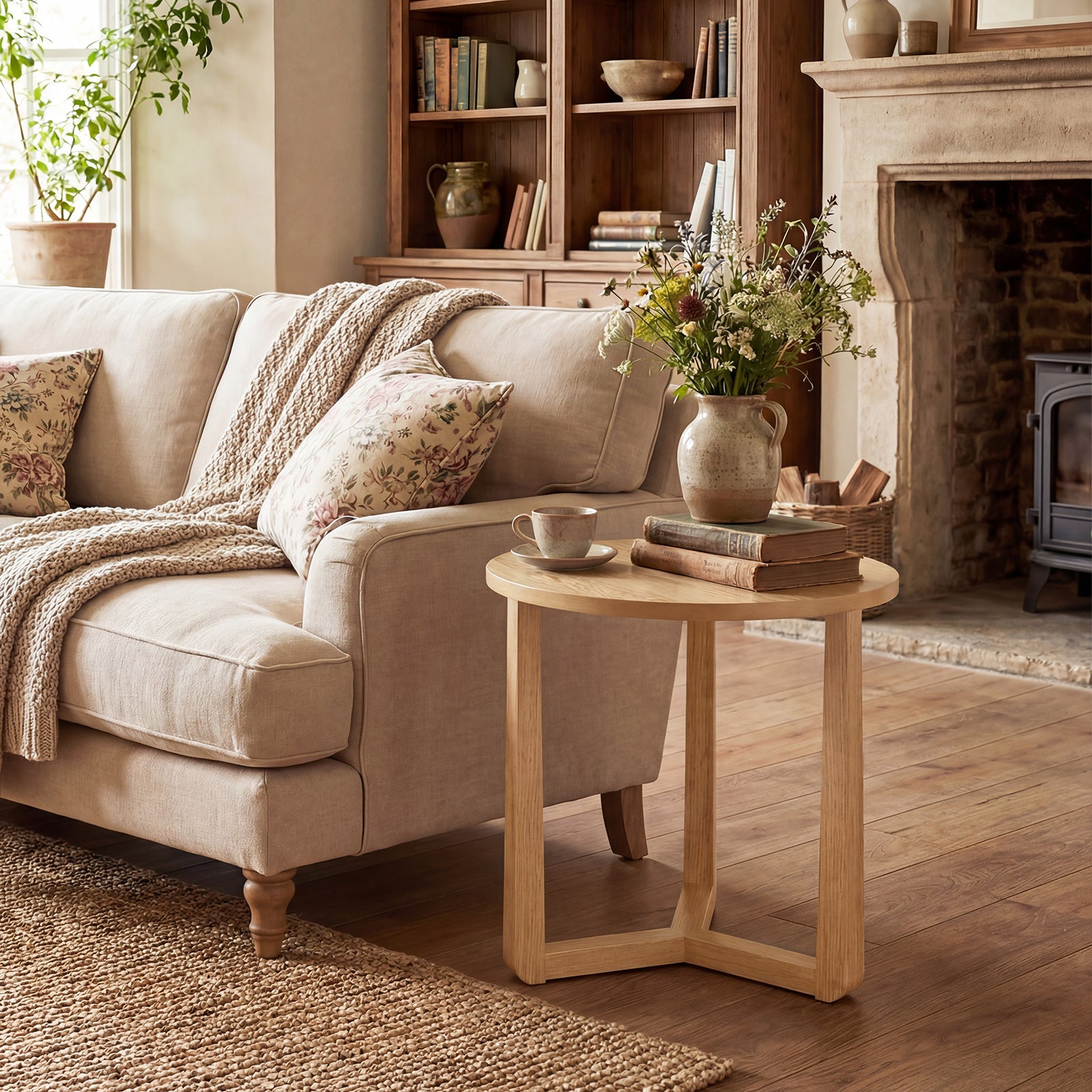 22.5 Inch Round Side Table, Farmhouse End Table, Natural