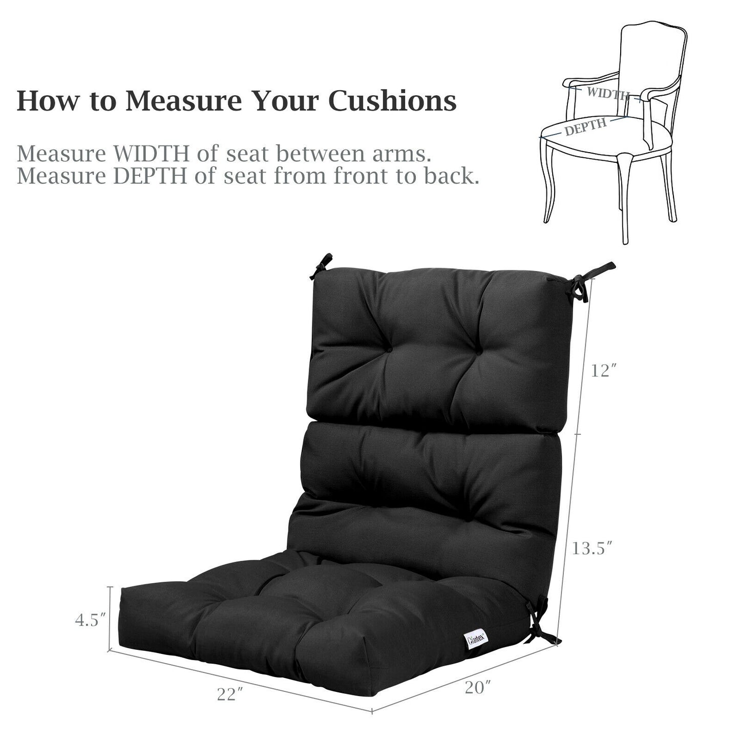 22 x 44 Inch Tufted Outdoor Patio Chair Seating Pad, Black