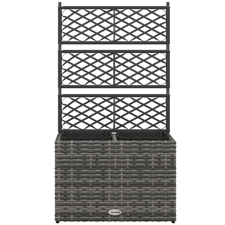 22L Raised Garden Box with Trellis, PE Rattan, Two Plant Boxes, Mixed Grey, Grey