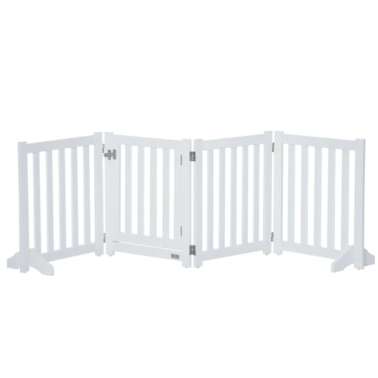 23.5"H Foldable Dog Gate with Door, 4 Panels, White