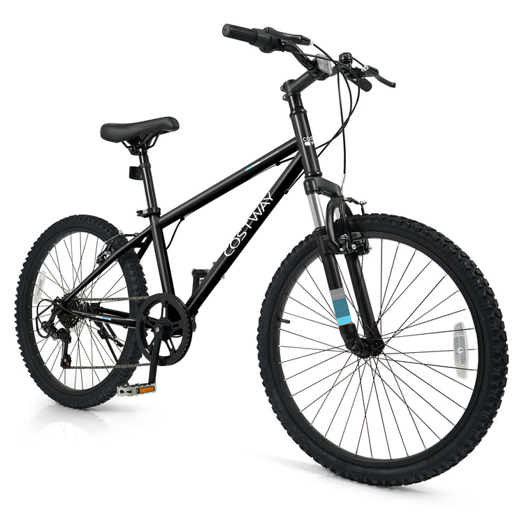 24 Inch Kids Mountain Bike Child Bicycle for Boys Girls Aged 8+ Years Old Black, Black