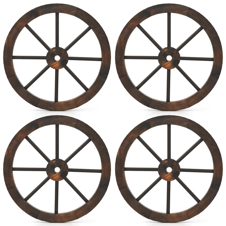 24 Inch Set of 4 Decorative Wooden Wagon Wheel Carbonized Solid Fir Wood, Rustic Brown