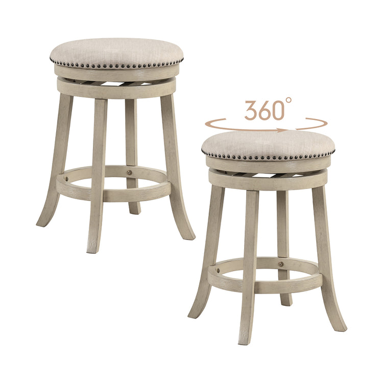 24/26 Inches Swivel Bar Stools Set of 2 wth Wooden Frame-26.5 inches, Beige