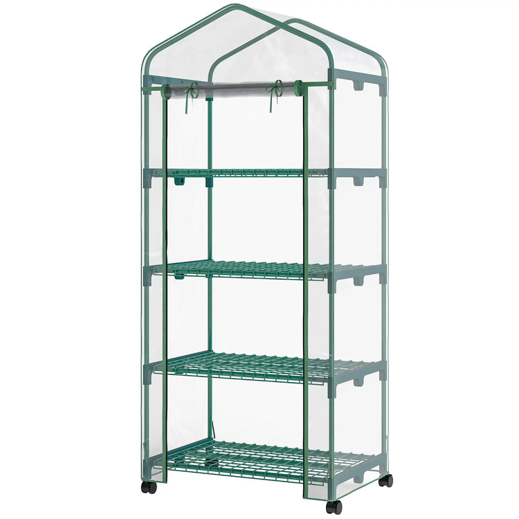 27" x 20" x 65" Portable Greenhouse, 4 Tier Shelves, Wheels, Steel Frame, Clear Plastic Cover