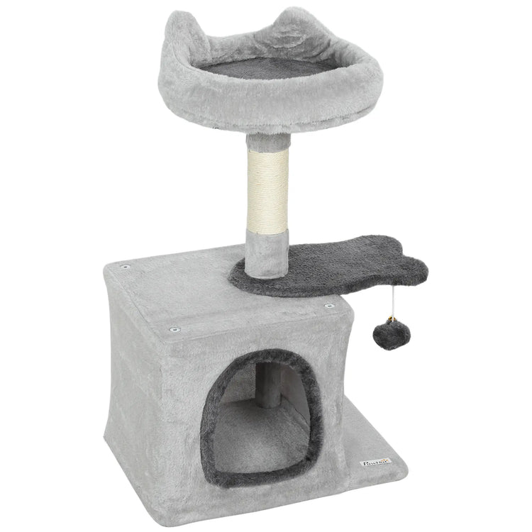 28" Cat Tree Tower with Plush Bed, Condo, Sisal Post, Perch, Ball, Light Grey