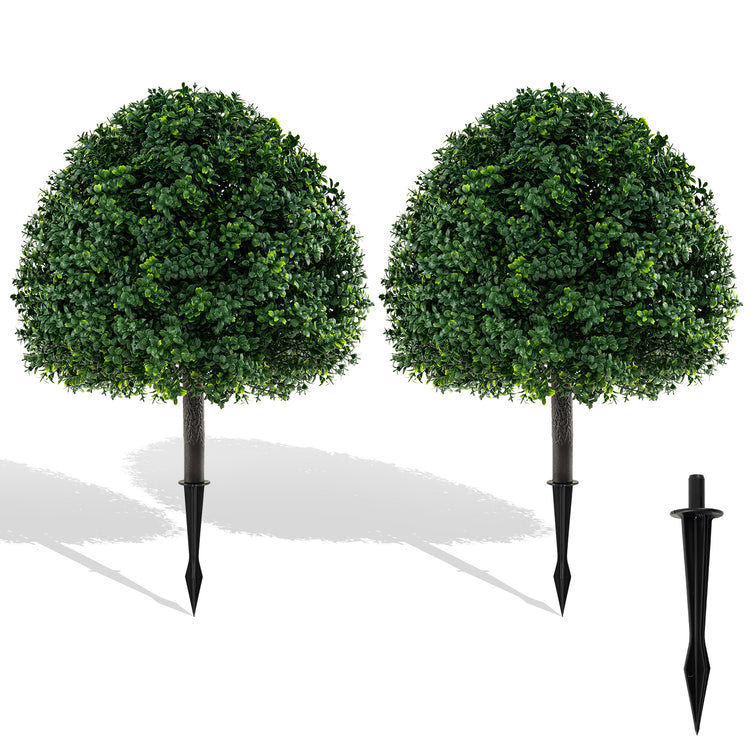 28 Inches Artificial Boxwood Topiary Ball Tree Set of 2 with Ground Spike, Green