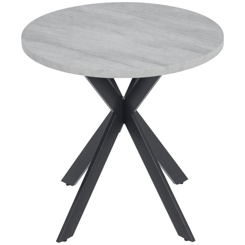 Elevate your dining experience with this modern round dining table, featuring a sleek veneered faux stone top and sturdy black crisscross steel legs. Perfect for 2-4 people, its spacious Φ29.5" top and durable design support up to 130 lbs, making it ideal for family meals and gatherings. Adjustable foot pads ensure stability on any surface.