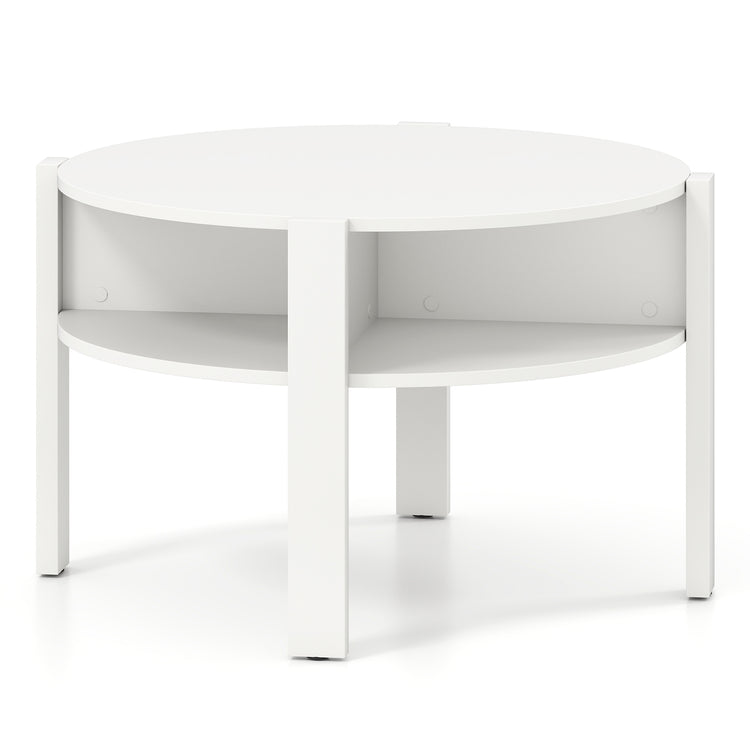 29.5 Inch Round Coffee Table with Storage Shelves for Small Space, White