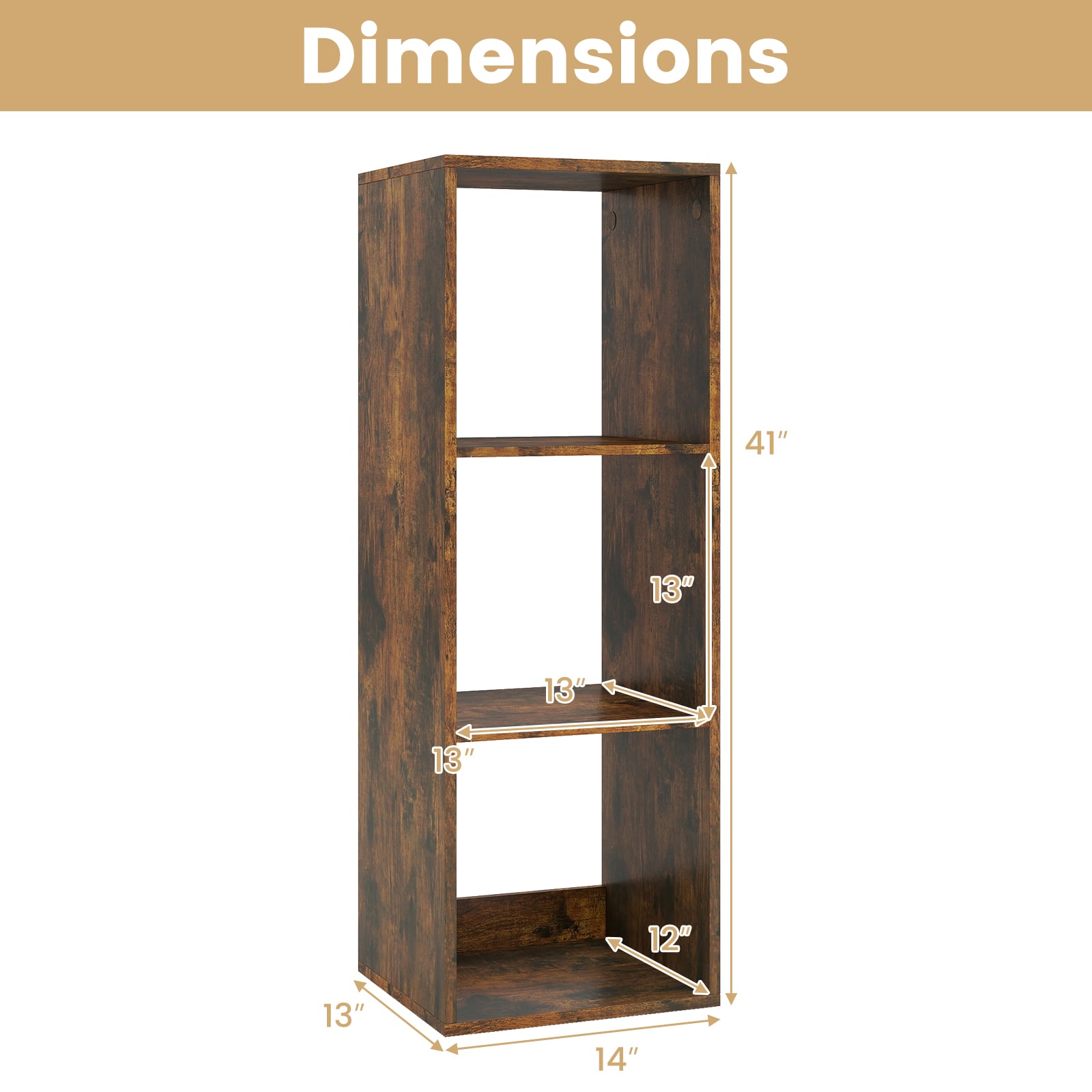 - Overall dimensions: 14 inches (35.56 cm) x 13 inches (33.02 cm) x 41 inches (104.14 cm).