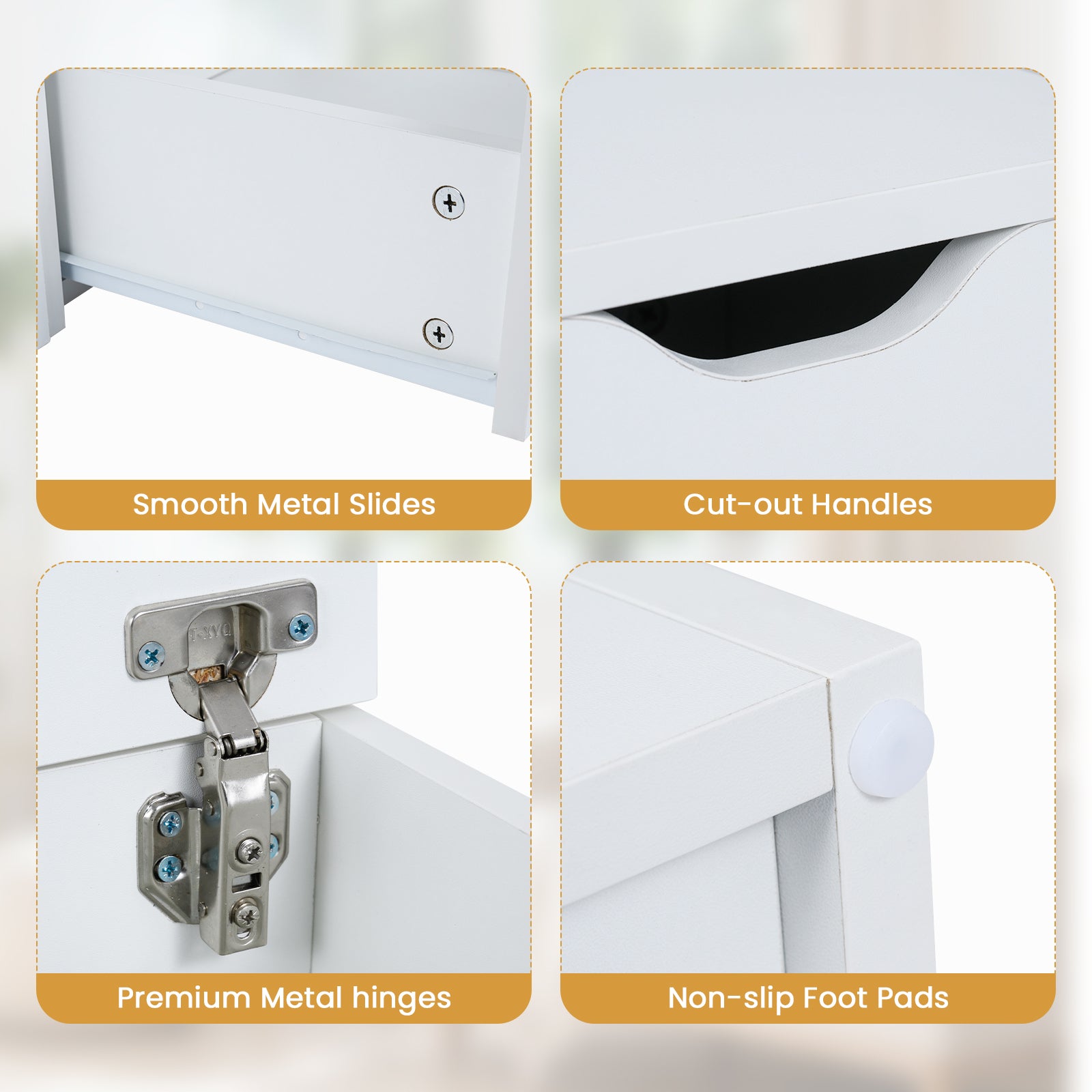 • Smooth metal slides for an easy pull of the drawer