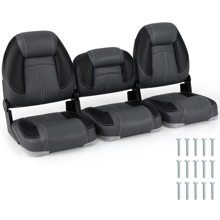 3-Pack Folding Boat Seats with 28D Soft Sponge Padding, Black