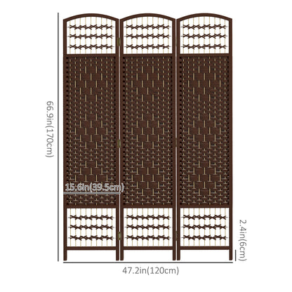 3 Panel Folding Room Divider, Portable Privacy Screen, Brown