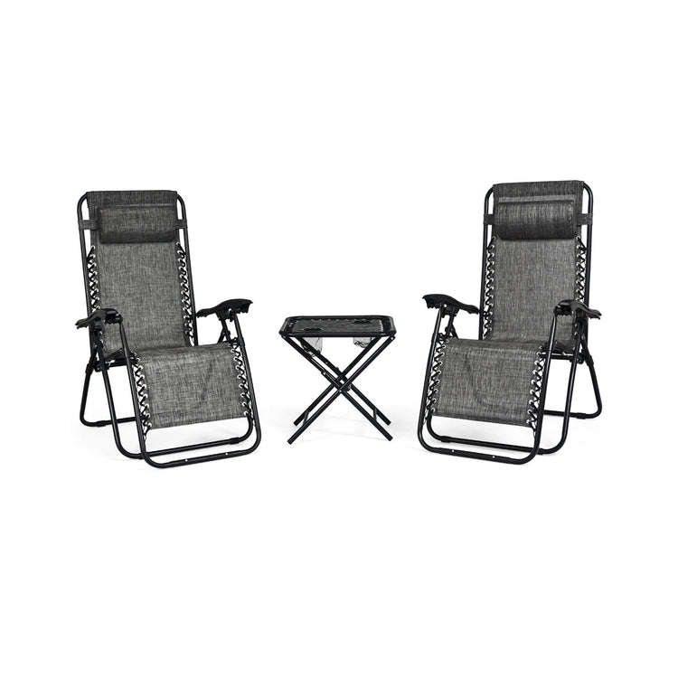 3 Pcs Folding Portable Zero Gravity Reclining Lounge Chairs Table, Gray