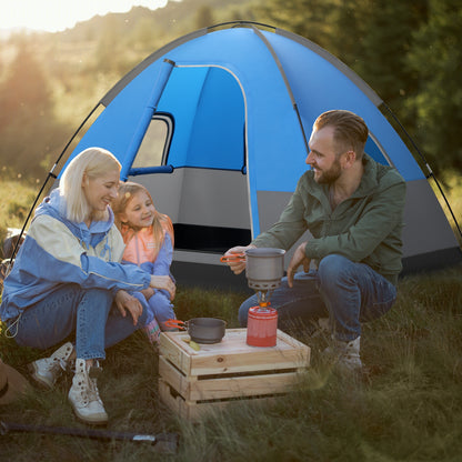 3 Person Outdoor Camping Tent, Removable Floor Mat, Blue