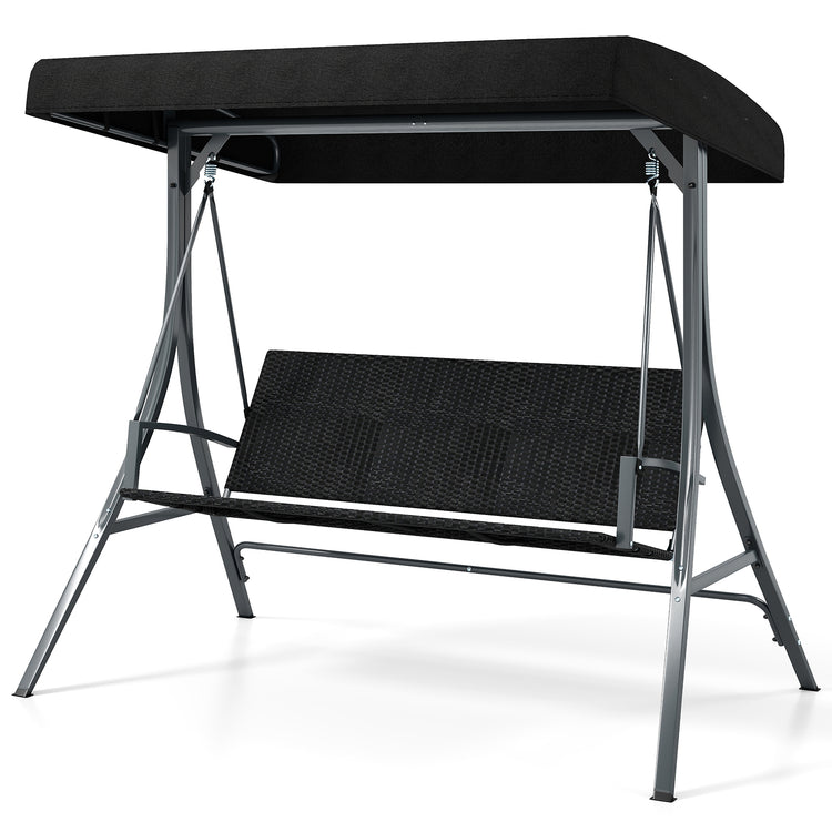 3-Person Porch Swing with Stand Outdoor Canopy Swing with Rattan Seat Back, Black