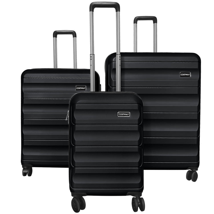 3-Piece Hardside Luggage Set 20/24/28 Inch Lightweight Hardside Suitcases, Black