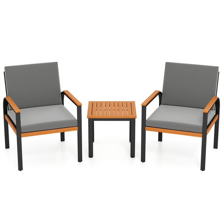 3 Piece Patio Furniture Set Outdoor Conversation Set with Coffee Table-Grey, Gray