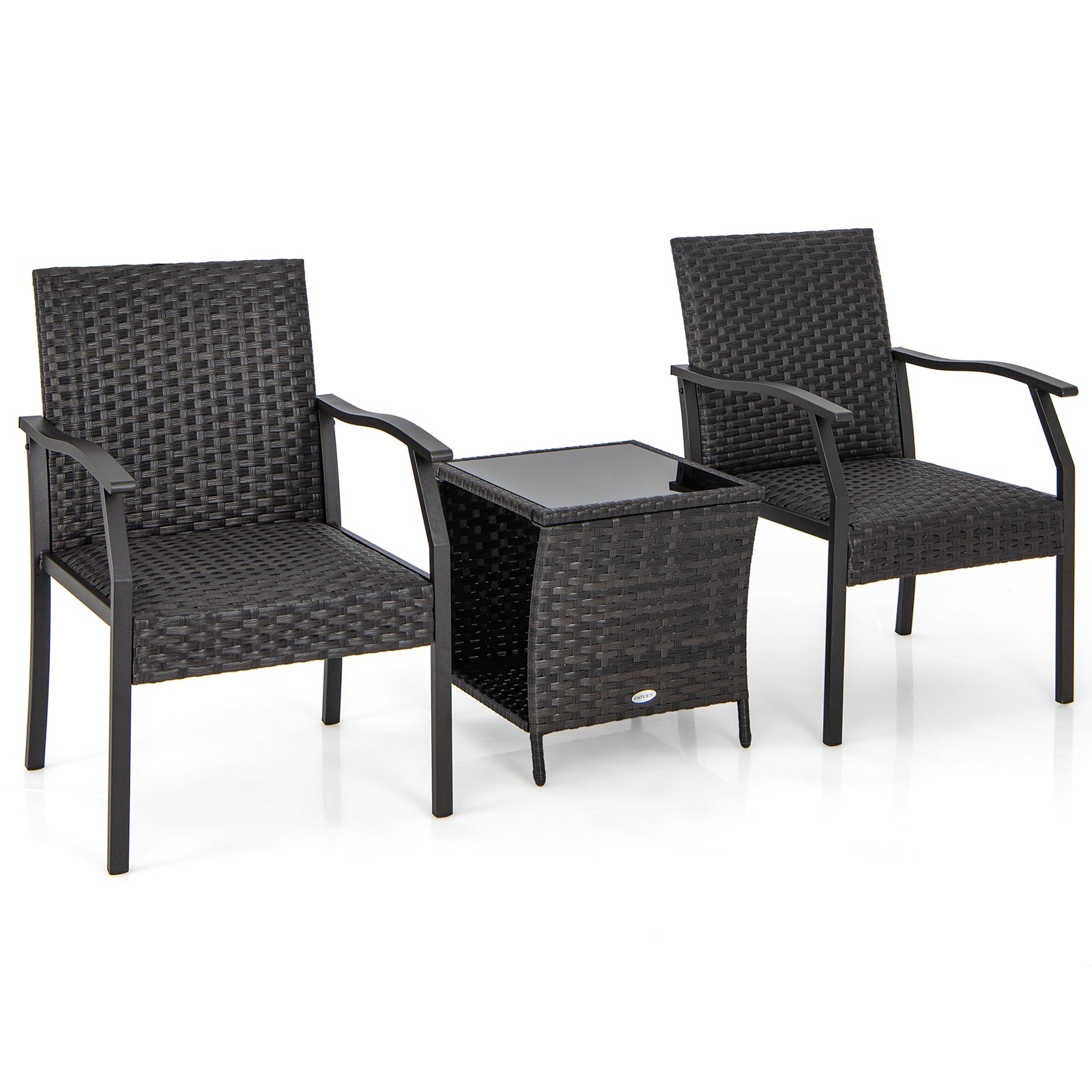3 Piece Patio Wicker Chair Set, Quick Dry Foam Cushions, Brown