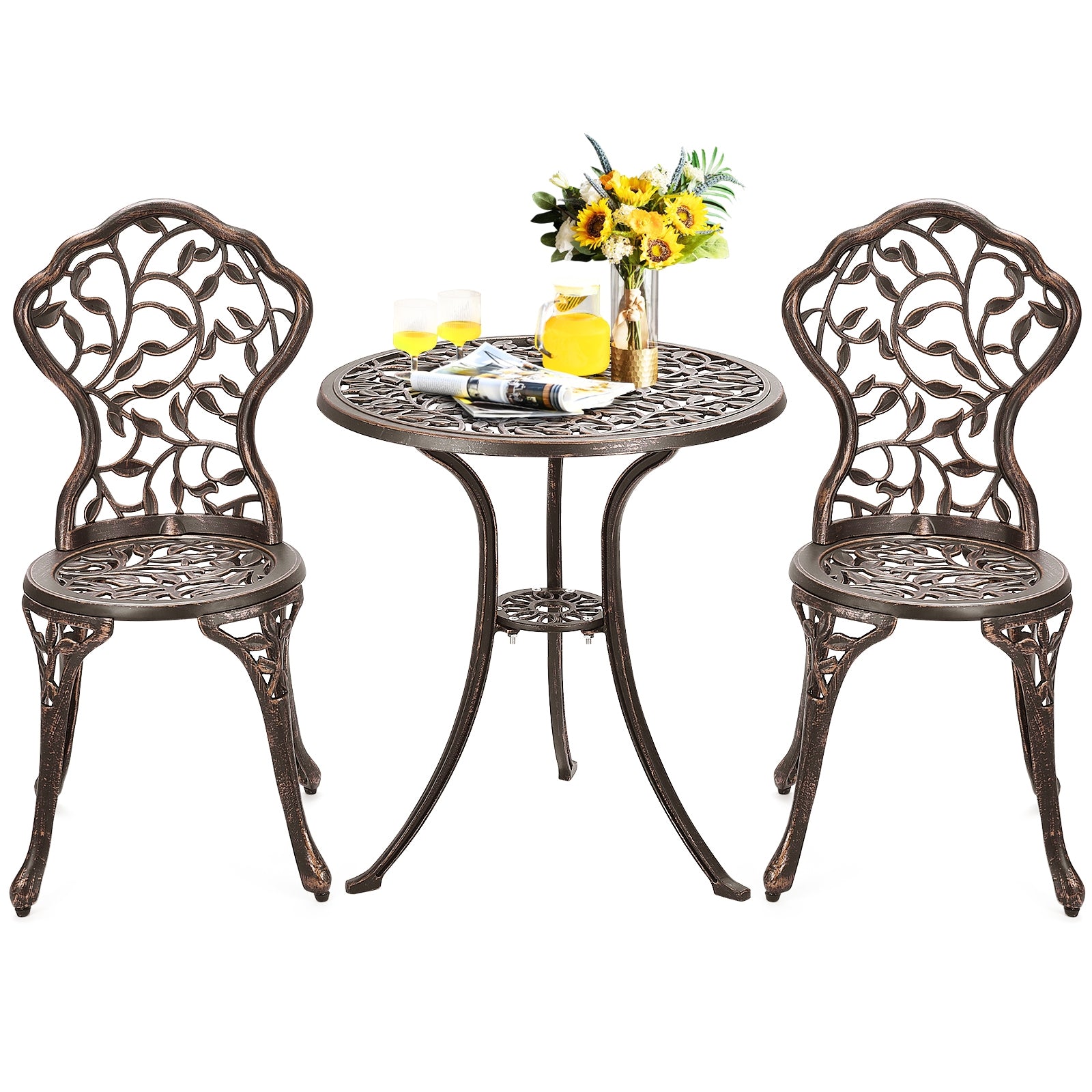 3 Pieces Cast Aluminum Bistro Set, Bronze