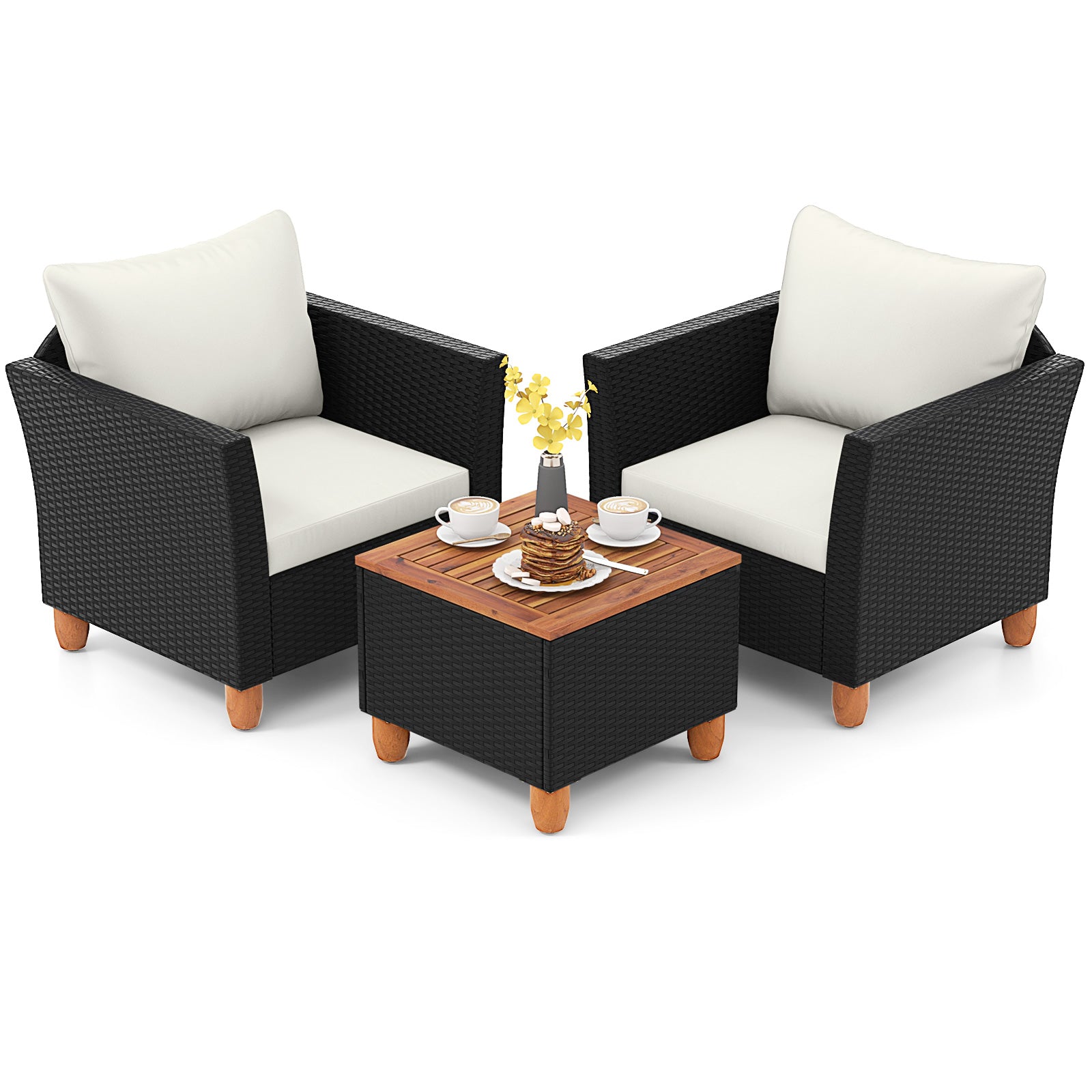3 Pieces Outdoor Patio PE Rattan Furniture Set with Coffee Table, White