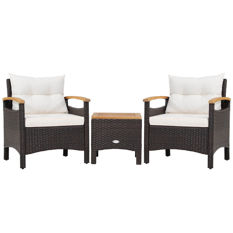 3 Pieces Patio Rattan Furniture Set with Removable Cushion, Off White
