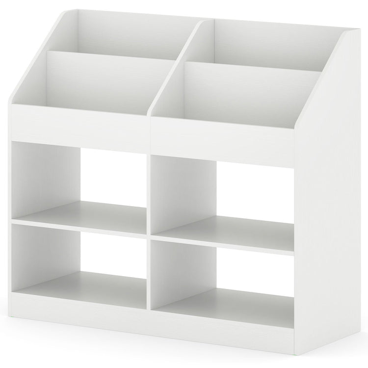 3-Tier Kid's Bookshelf Toy Storage Organizer with Display Rack and 4 Compartments, White