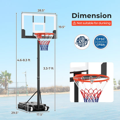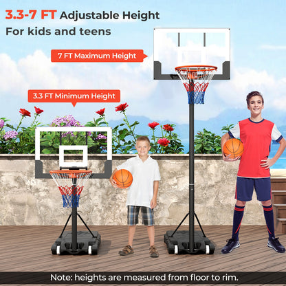 Portable Adjustable Kids Basketball Hoop, 3.3-7 Feet, White