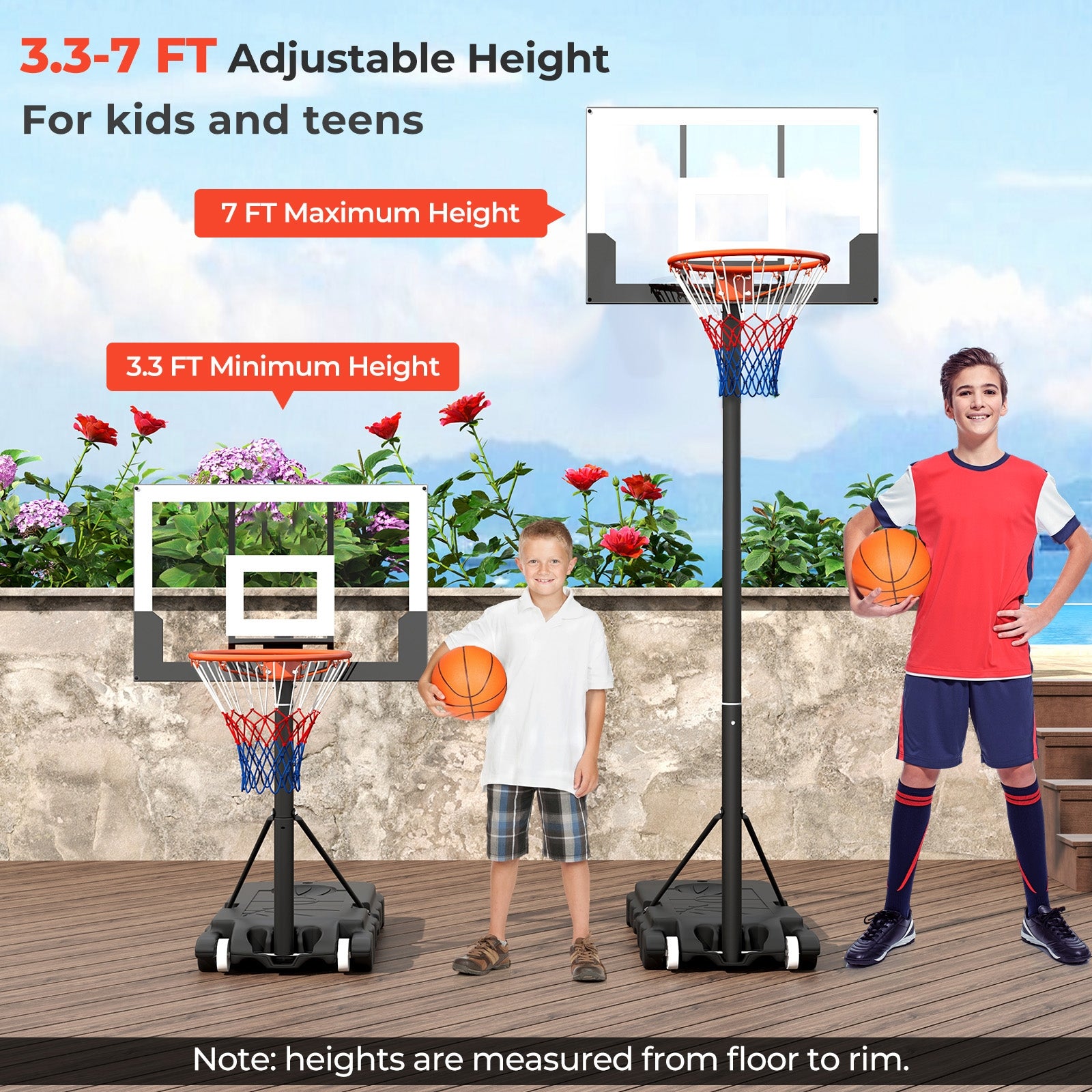 - 3.3-7 ft adjustable heights cater to different ages and skill levels.