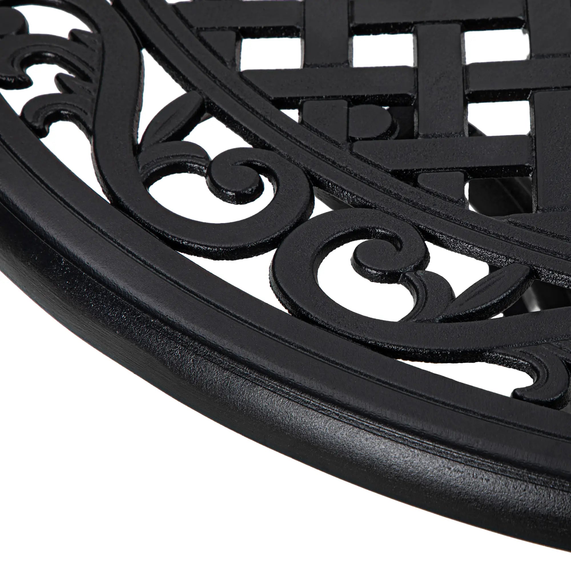 35.5" Round Outdoor Dining Table, Cast Aluminum, Grid Top, Black