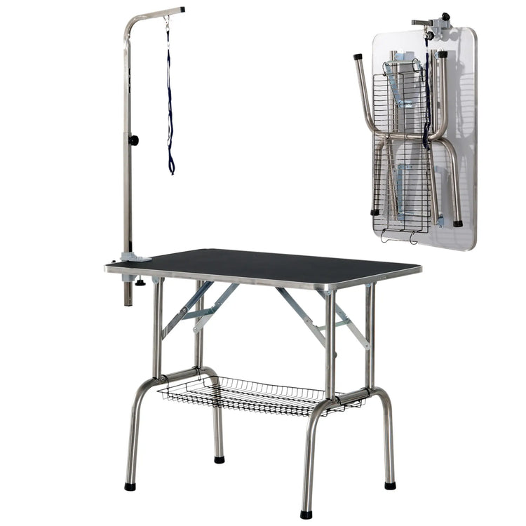 36-Inch Dog Grooming Table, Stainless Steel, Adjustable Arm, Basket