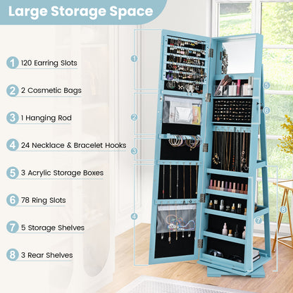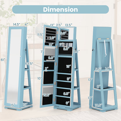 Rotatable 2-in-1 Lockable Jewelry Cabinet, Full-Length Mirror, Blue