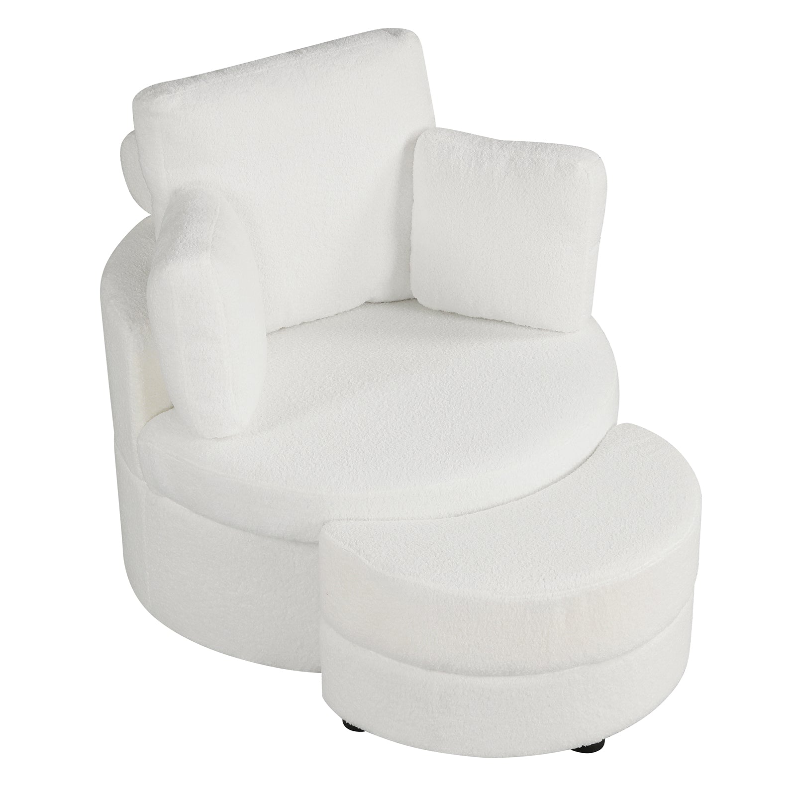 360° Swivel Accent Chair with Half Moon Storage Ottoman, White