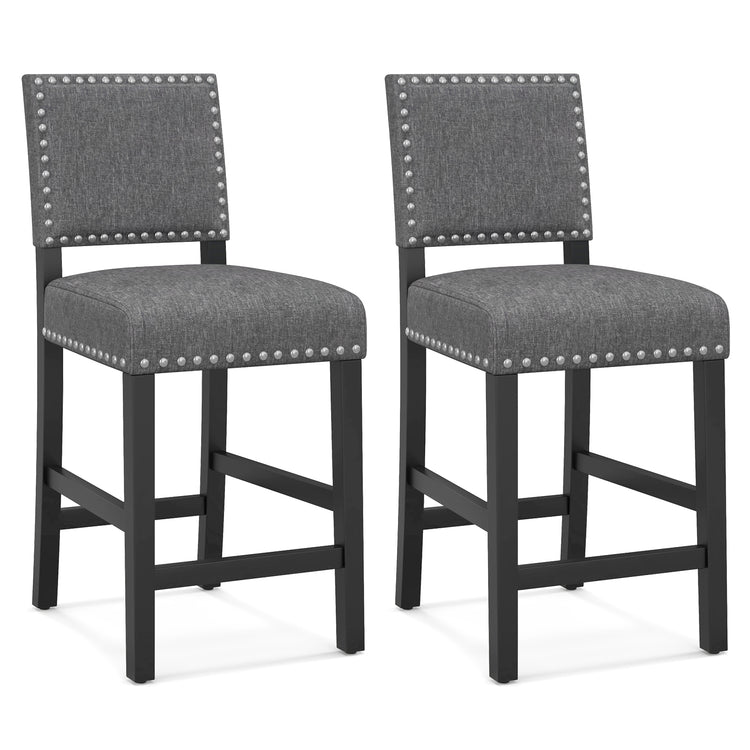 38.5/43.5 Inch Set of 2 Counter Height Chairs with Solid Rubber Wood Frame-S, Gray